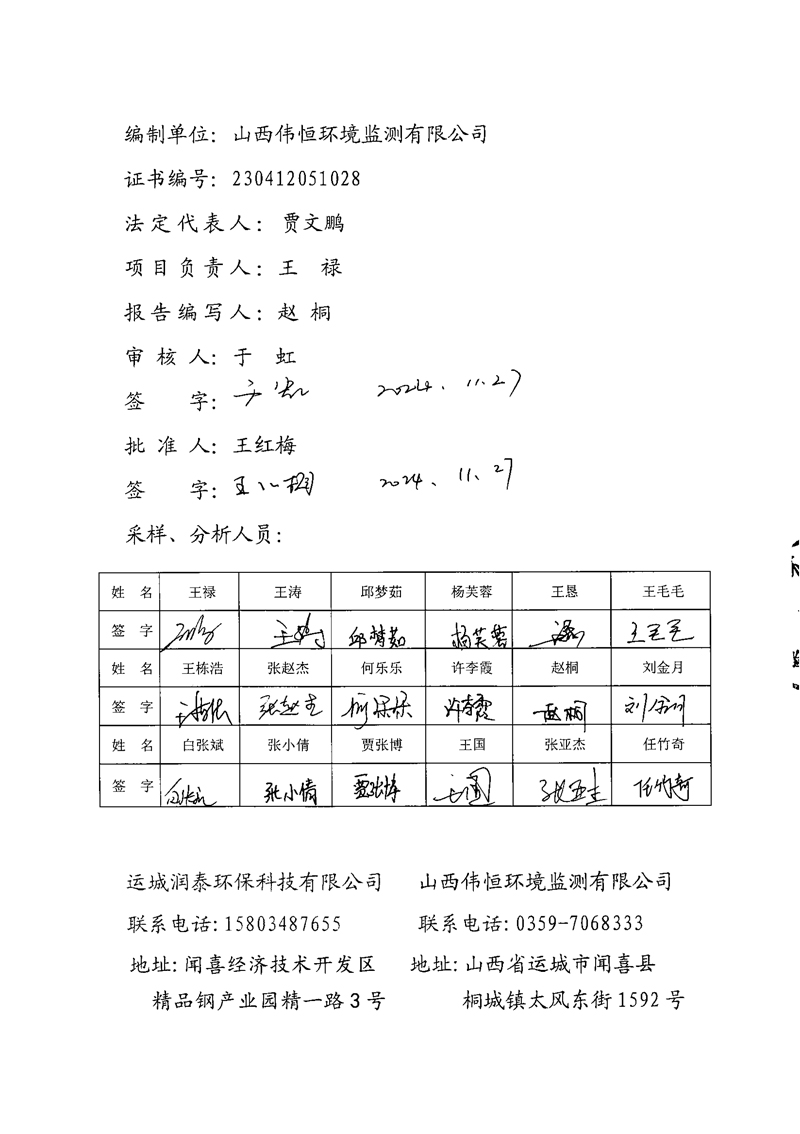 2024年潤泰環(huán)保十一月份報告