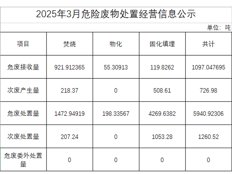 2025年三月危險(xiǎn)廢物處置經(jīng)營(yíng)信息公示